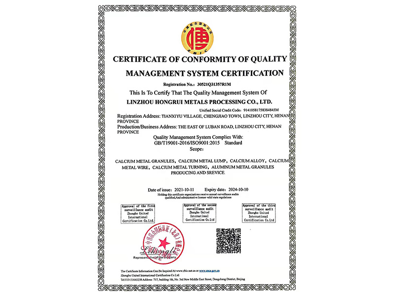 质量管理体系认证证书英文版